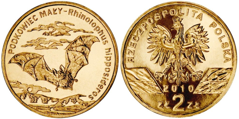 2 zł Podkowiec mały (łac. Rhinolphus hipposideros) 2010